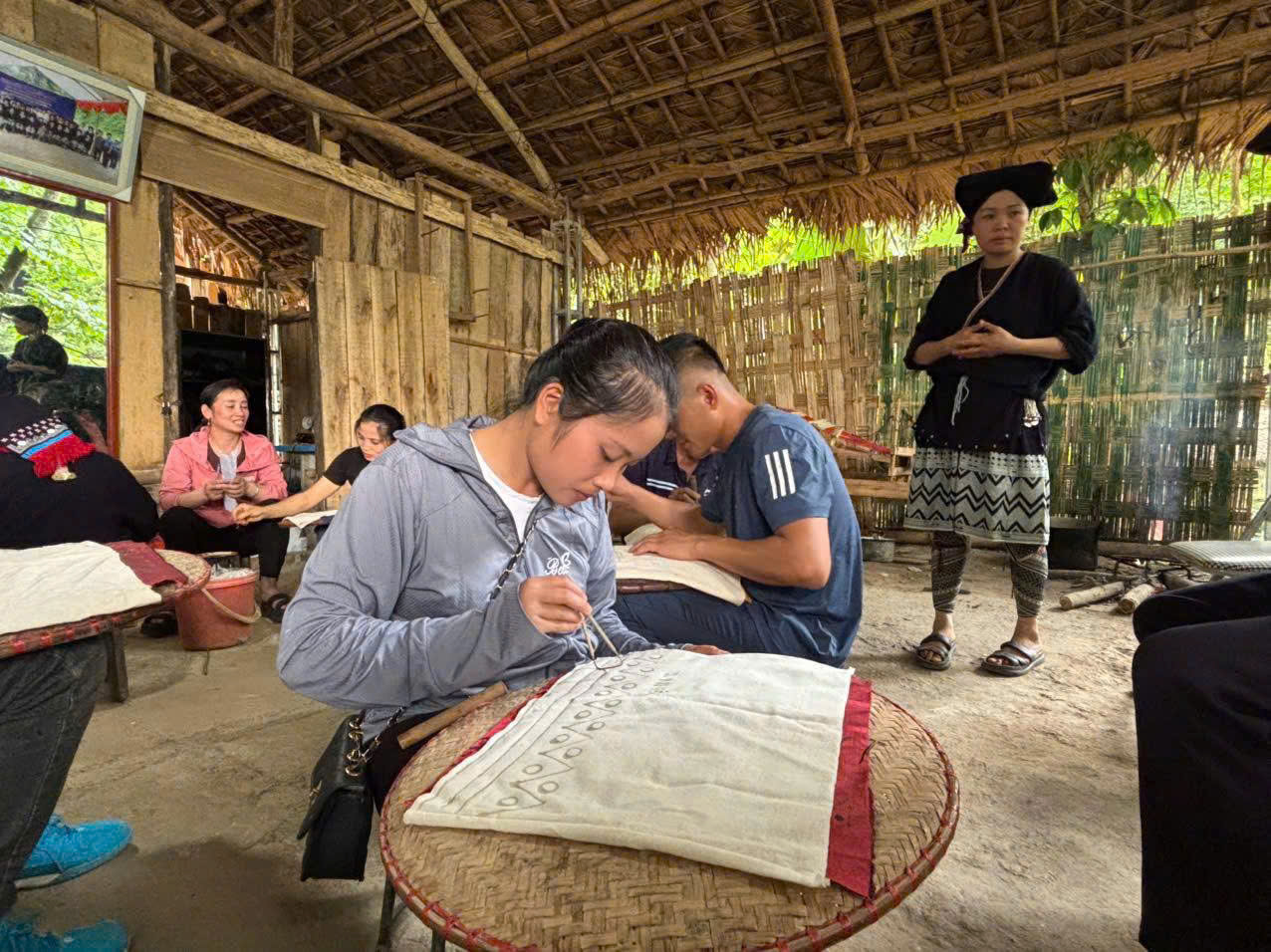 On the first afternoon, the group joined three hands-on activities organized by local service teams: a brocade weaving workshop, traditional Dó paper-making, and a herbal medicine and Dao blessing session.