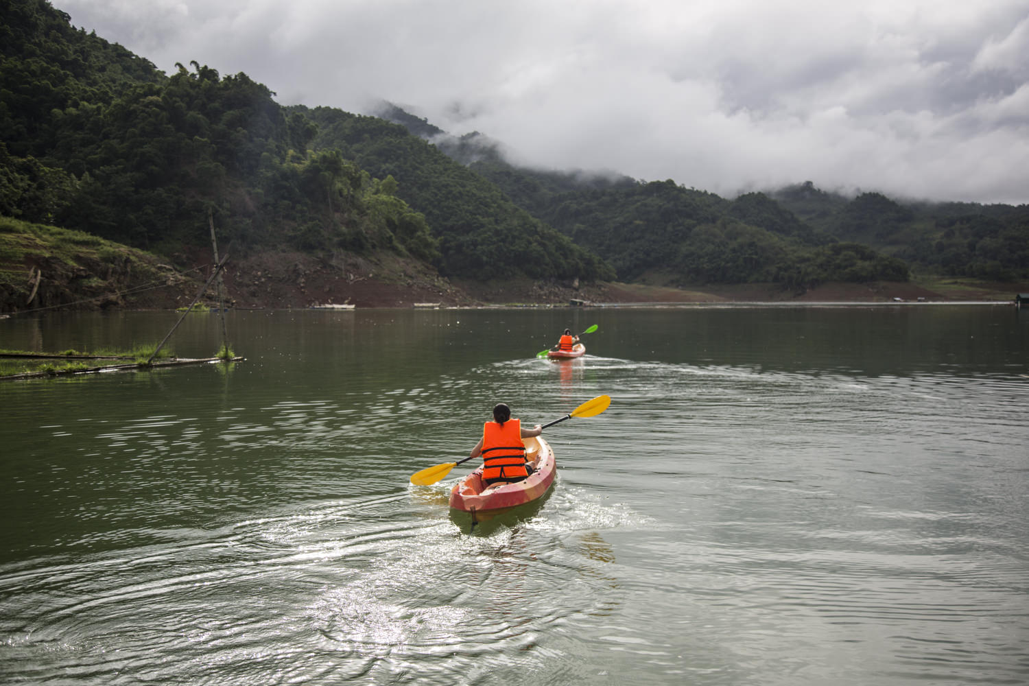 14h00: Kayaking, swimming on Hoa Binh lake, near the homestay.