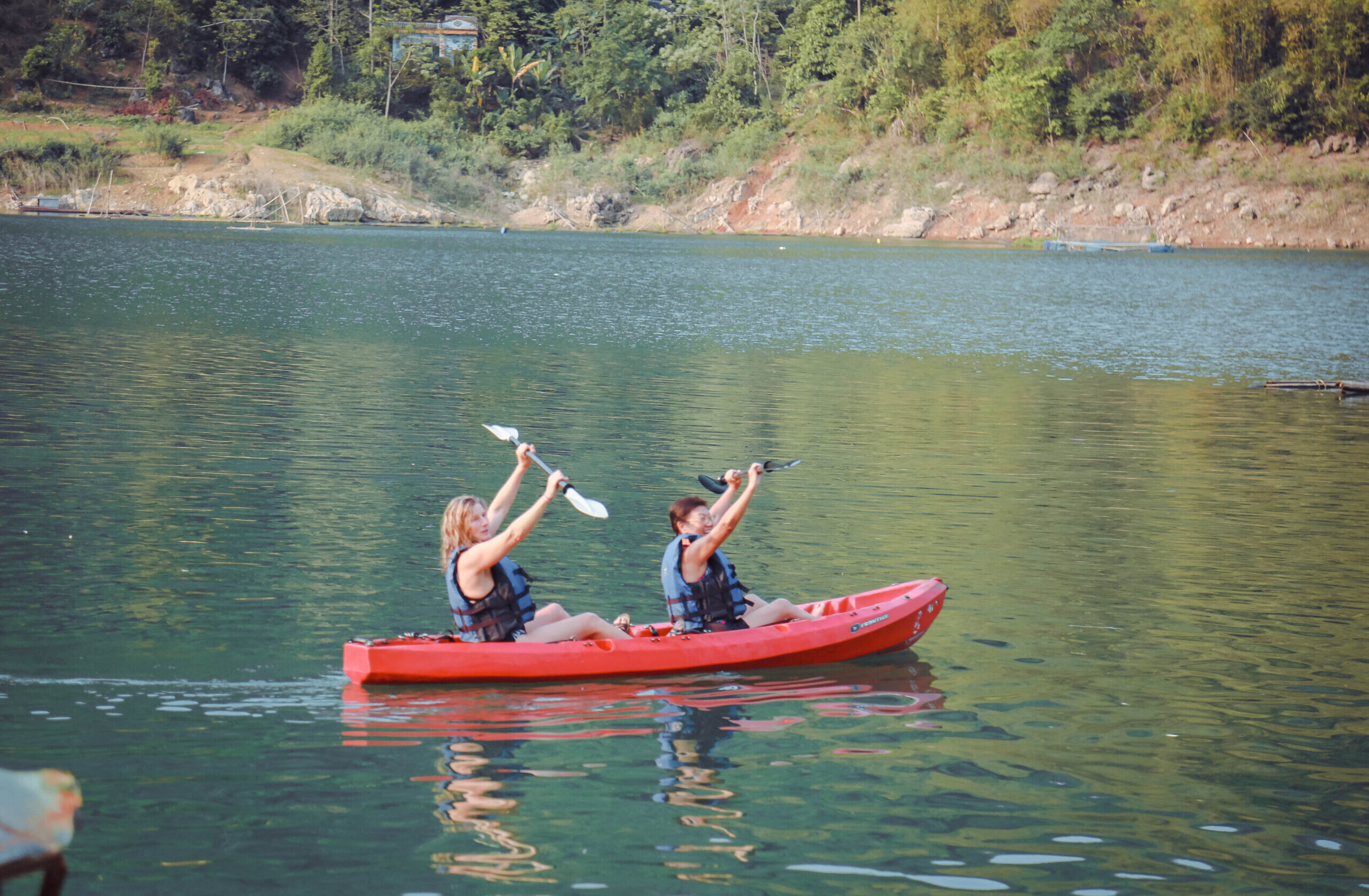 Xin được chia sẻ đôi lời tâm tình từ một thành viên Action on CBT – Ms. Trang – cũng là cô gái được sinh ra và lớn lên trong sự bình yên của vùng ven hồ này. Mẹ cô là bà Yệu – người phụ nữ đã cùng những hộ dân đầu tiên xây nên mô hình du lịch cộng đồng ở Đá Bia, đón hàng ngàn lượt khách quốc tế, và truyền lại những câu chuyện cổ của người Mường Aụ Tá qua từng lời kể.